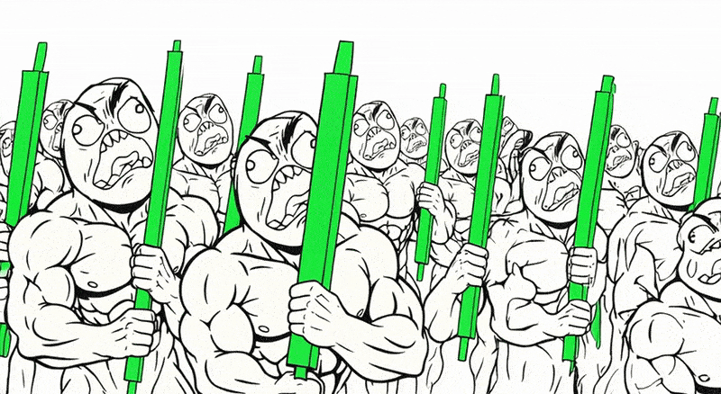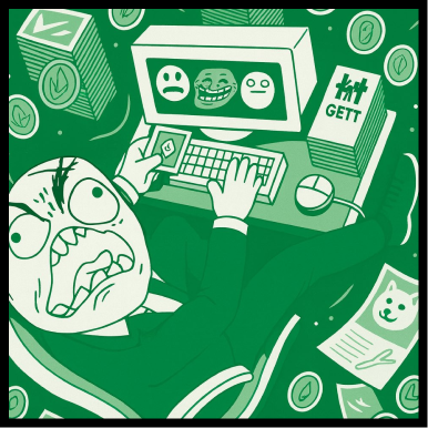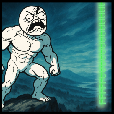Rageguy refers to the main character of a series of crudely-drawn comics typically consisting of four panes, portraying situations that can bring rage and exasperation, with the main character screaming with anger as a result. Due to its simplicity and exploitability, $RAGEGUY has been proven popular thus being evolved into a comic series now known as Rage Comics.